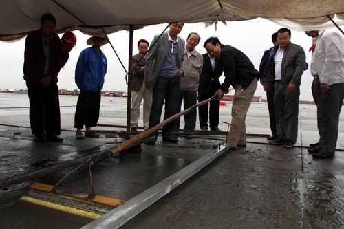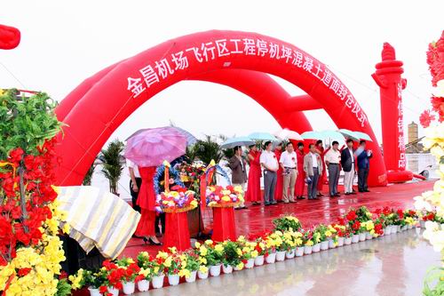 2010年8月20日上午10時,金昌機場飛行區(qū)停機坪混凝土道面工程順利封倉。甘肅省交通運輸廳、金昌市政府、甘肅機場建設投資管理公司、甘肅機場項目建設指揮部及施工單位等有關(guān)單位領(lǐng)導現(xiàn)場見證了道面工程順利封倉的時刻。