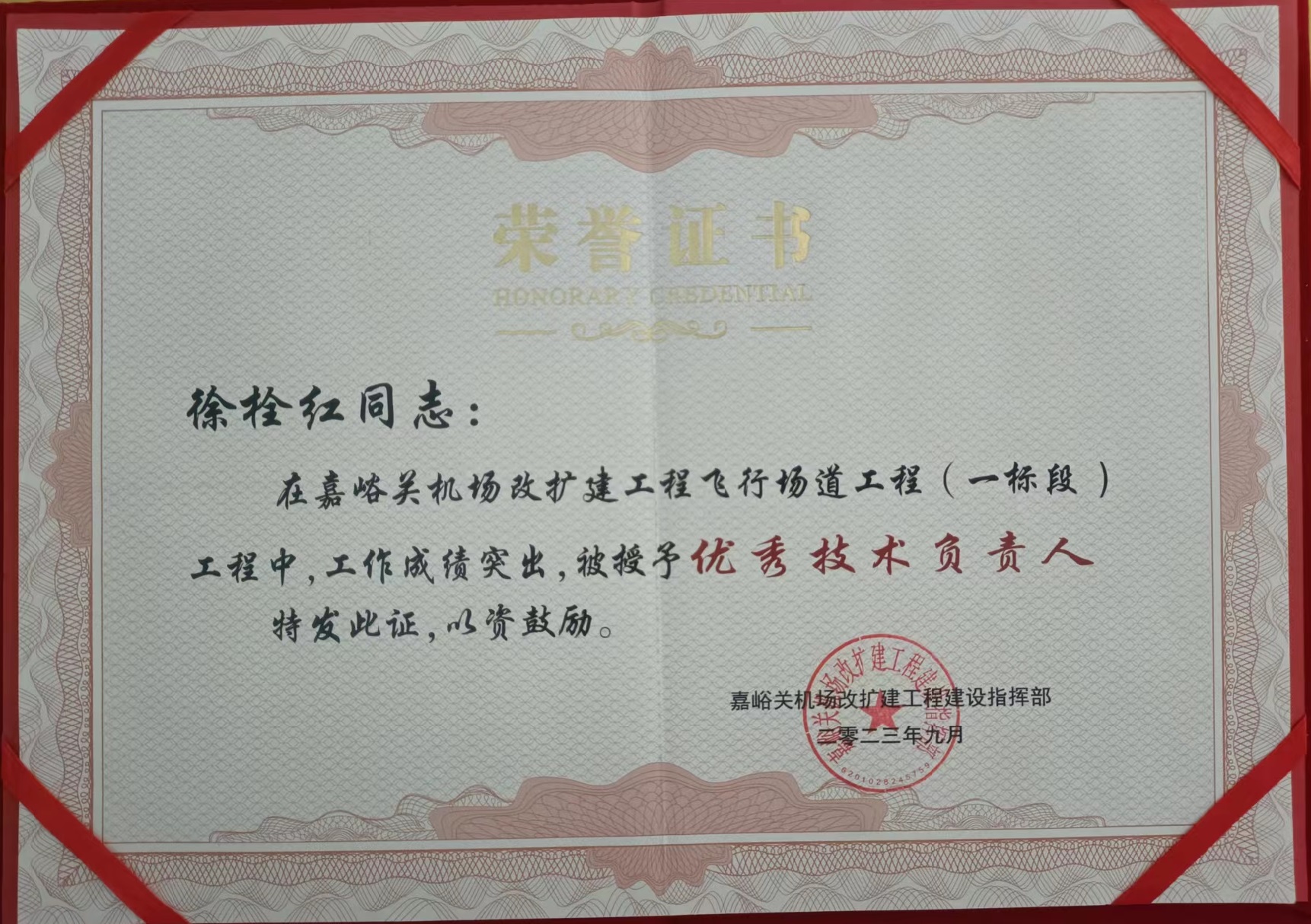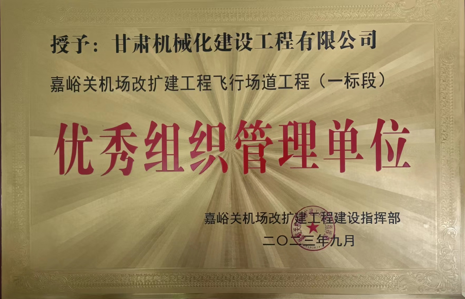 近日,嘉峪關機場改擴建工程建設指揮部對在嘉峪關酒泉機場改擴建工程中作出重要貢獻的參建單位給予通報表彰,公司榮獲“嘉峪關機場改擴建工程飛行場道工程 (一標段)優(yōu)秀組織管理單位”稱號,徐栓紅同志被授予“優(yōu)秀技術負責人榮譽稱號”。?