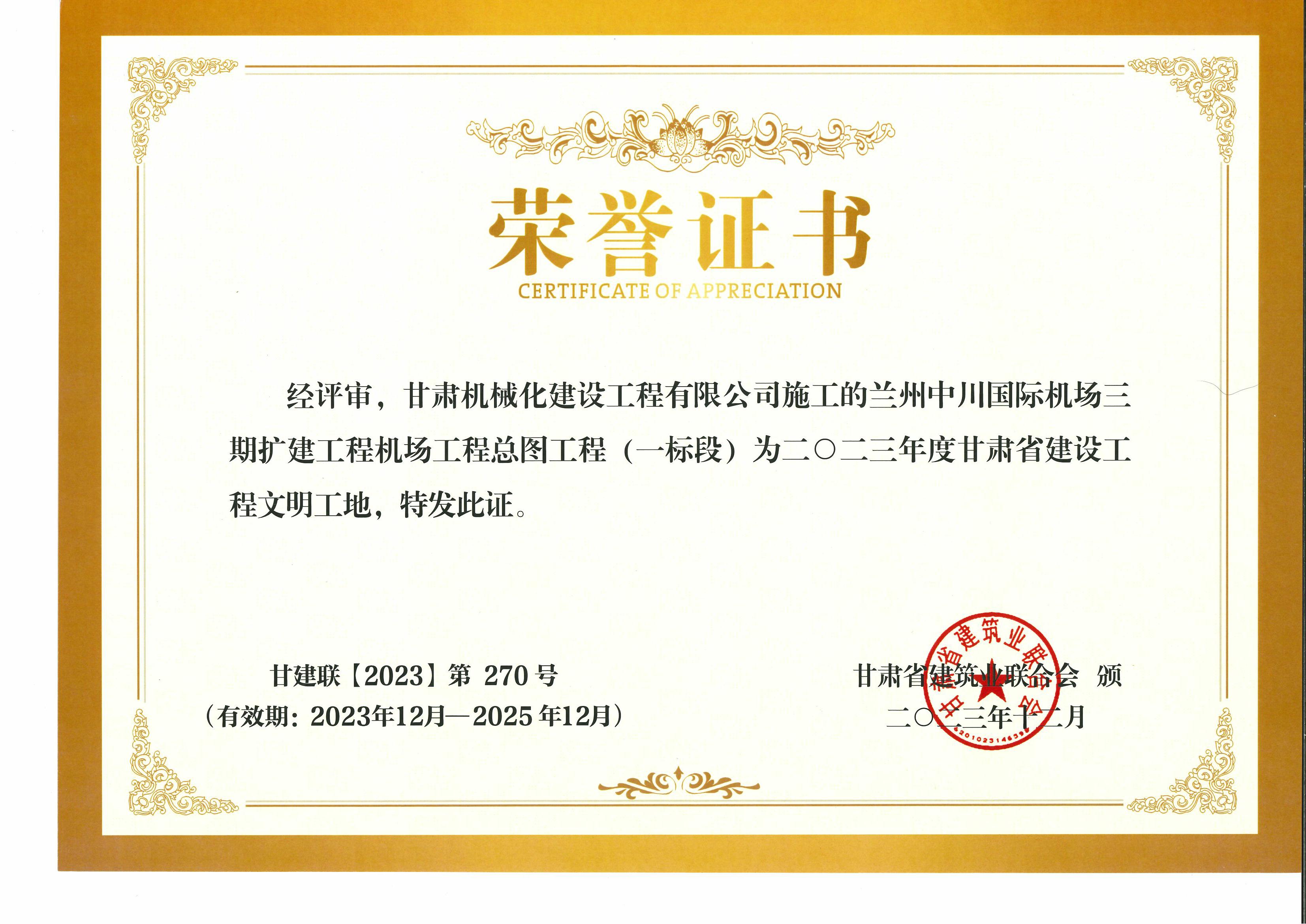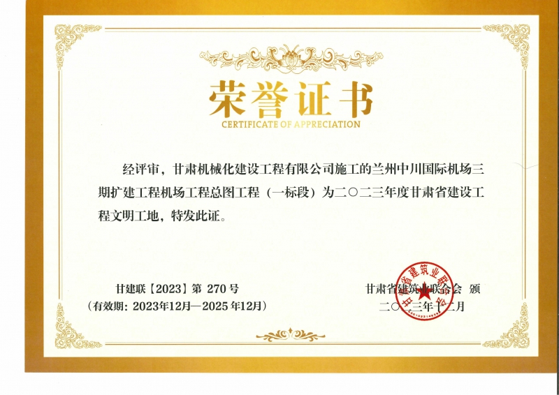 2023年度甘肅省建設(shè)工程文明工地 蘭州中川國際機場二期擴建工程機場工程總圖工程 (一標段)