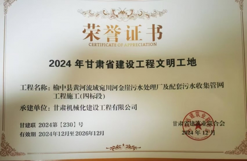榆中縣黃河流域宛川河金崖污水處理廠及配套污水收集管網(wǎng)工程施工-2024 年甘肅省建設工程文明工地
